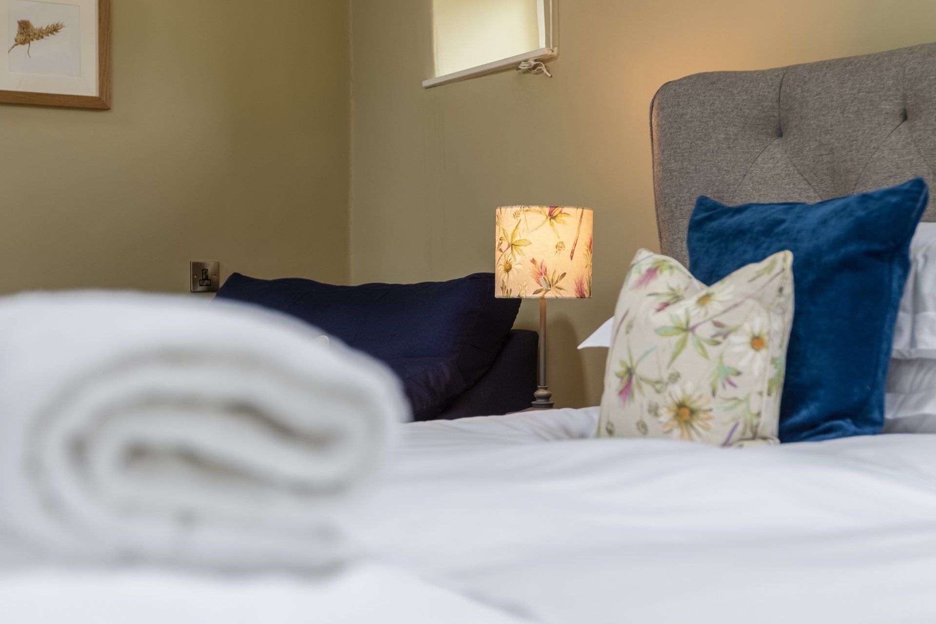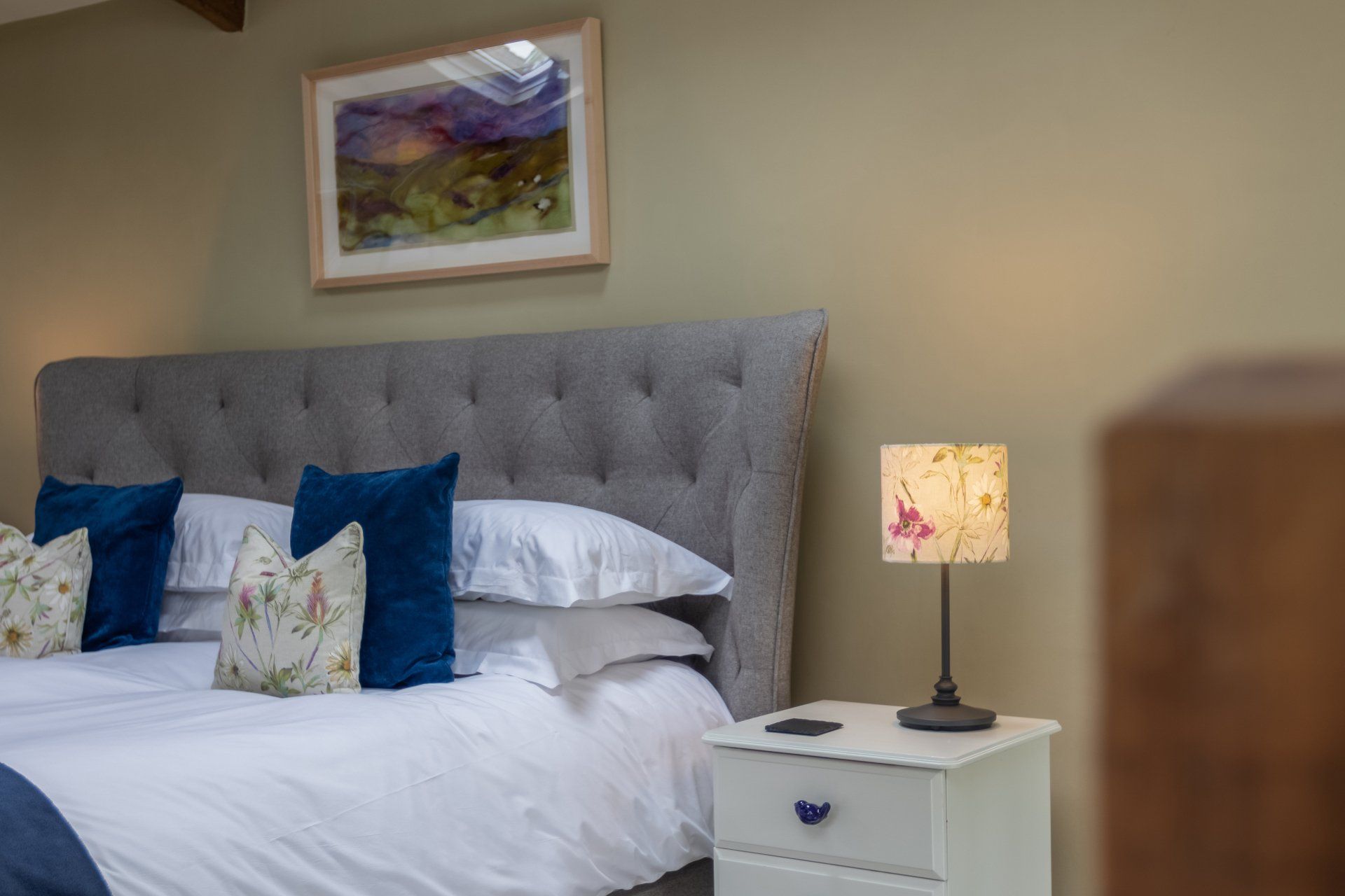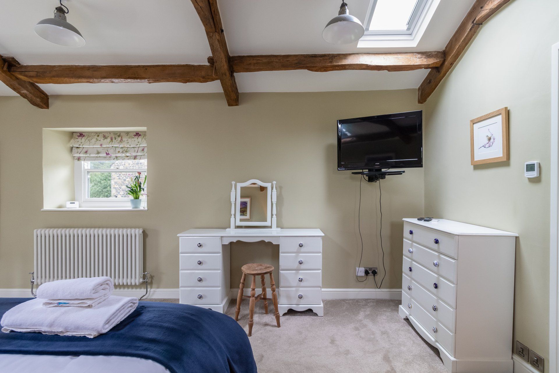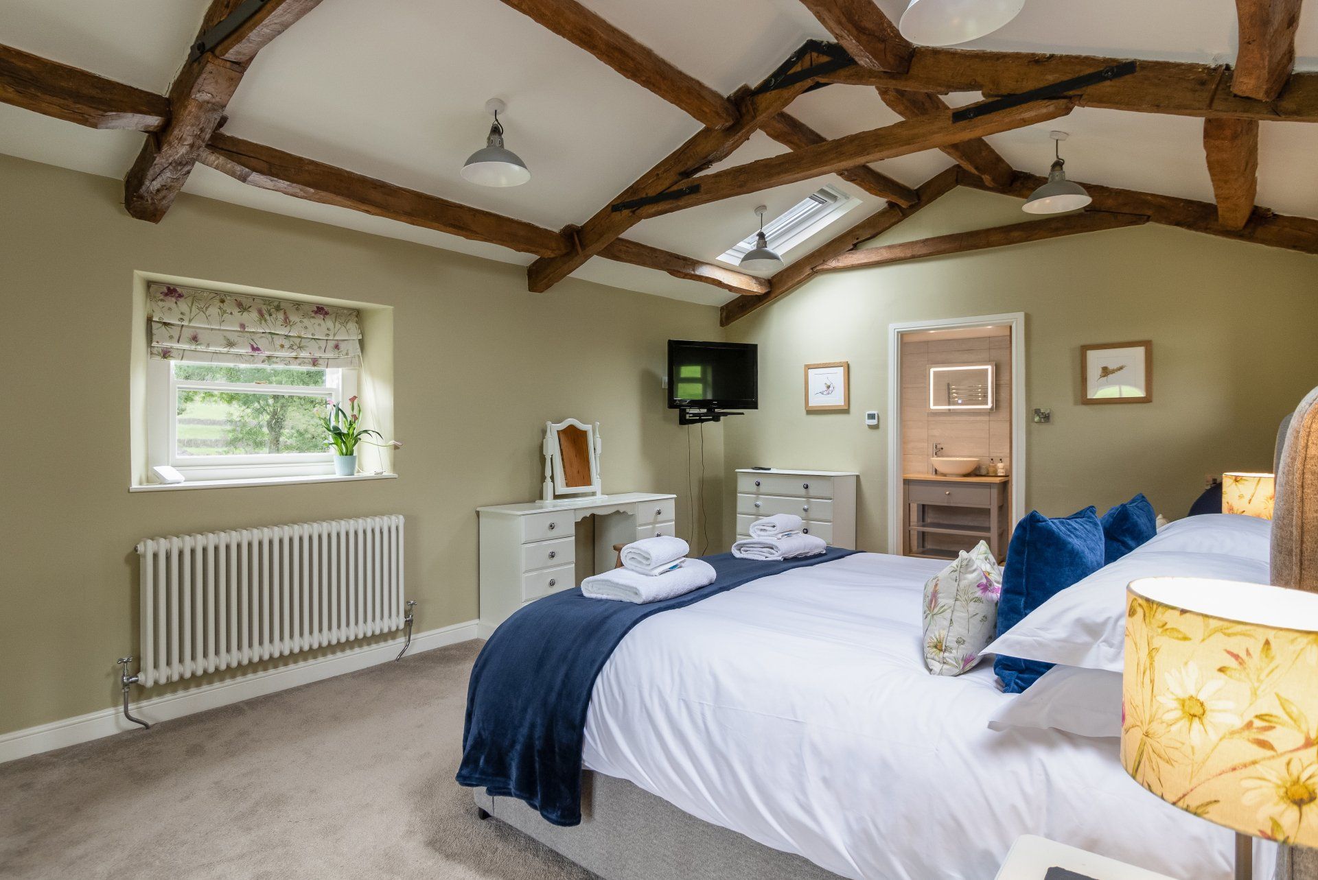 - Upstairs to the huge super king bedroom; vaulted ceiling; luxurious Egyptian cotton bedding