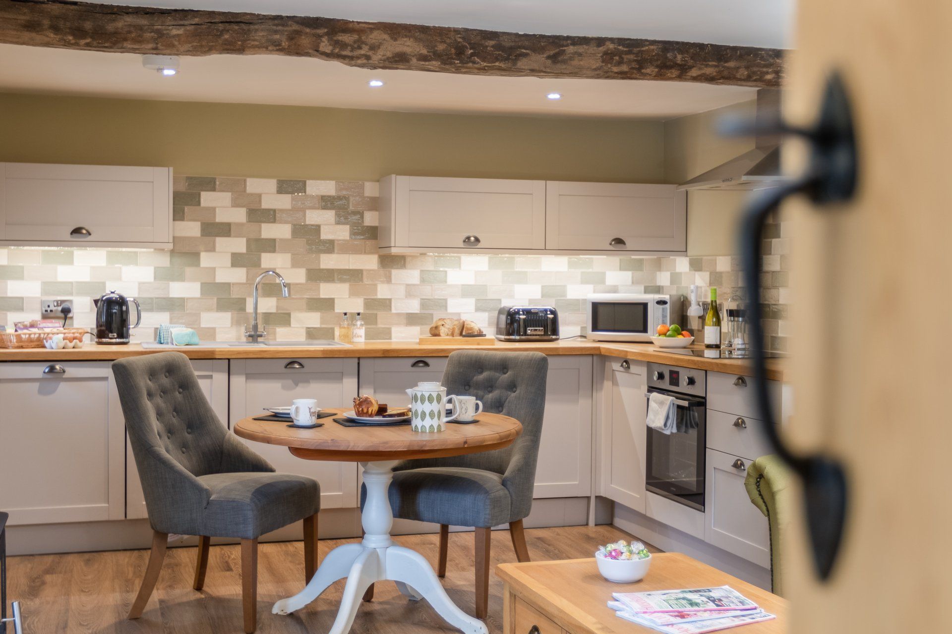 - Kitchen cloths/towels, essential items like washing up liquid, dishwasher tablets, cleaning products, toilet rolls, tin foil, salt and pepper are provided.