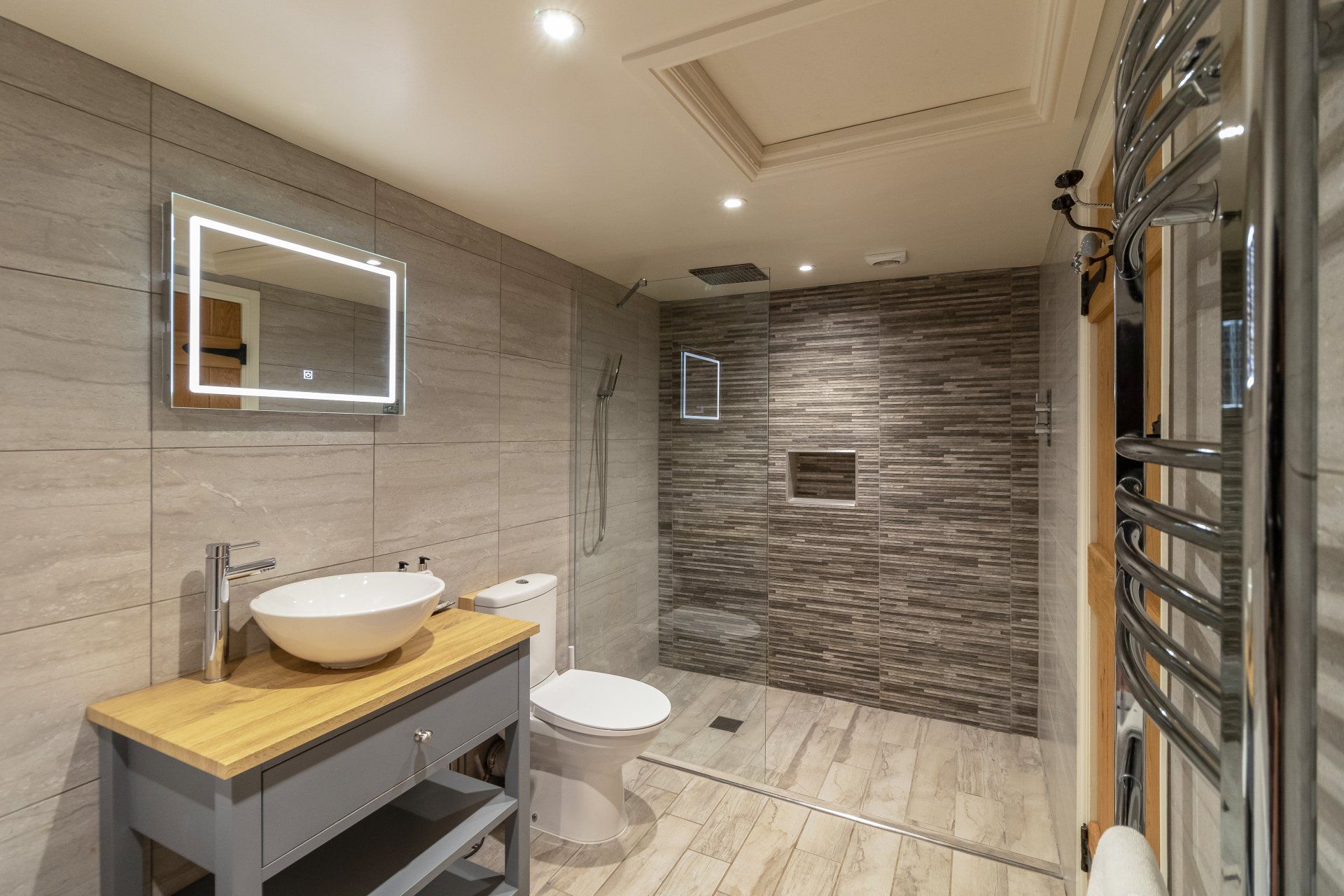 - Large bathroom with walk in rainfall shower; separate bath; vanity unit sink. Towels provided.